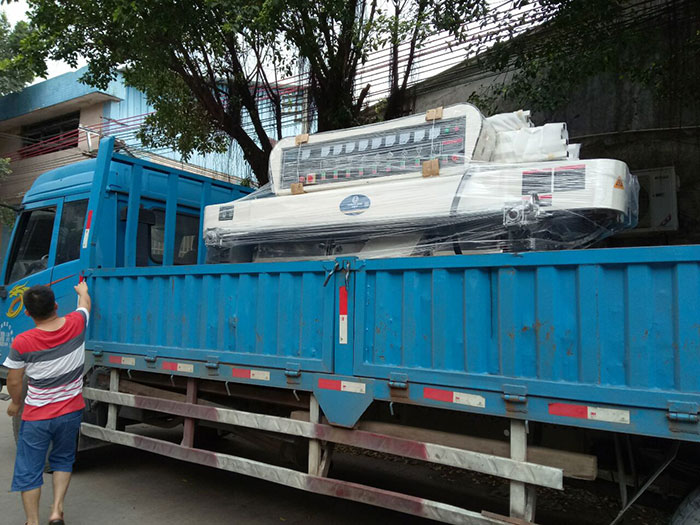 發(fā)往浙江的9頭直邊機裝車出發(fā)