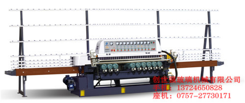 該機(jī)為十磨頭前梁升降式玻璃斜邊機(jī),可磨超小片玻璃與超寬斜面和45°多級邊形多功能為一體的玻璃磨邊機(jī)。