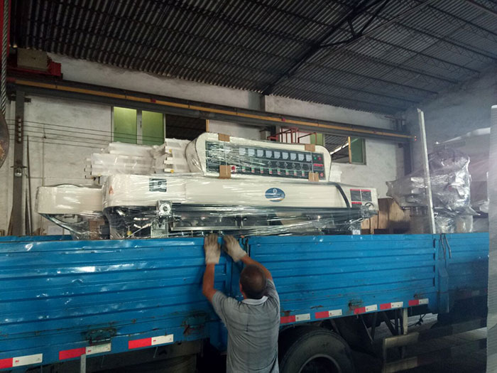 兩臺(tái)CSQ-9玻璃直線磨邊機(jī)和一臺(tái)CSQ-1321玻璃異形磨邊機(jī)裝車發(fā)貨